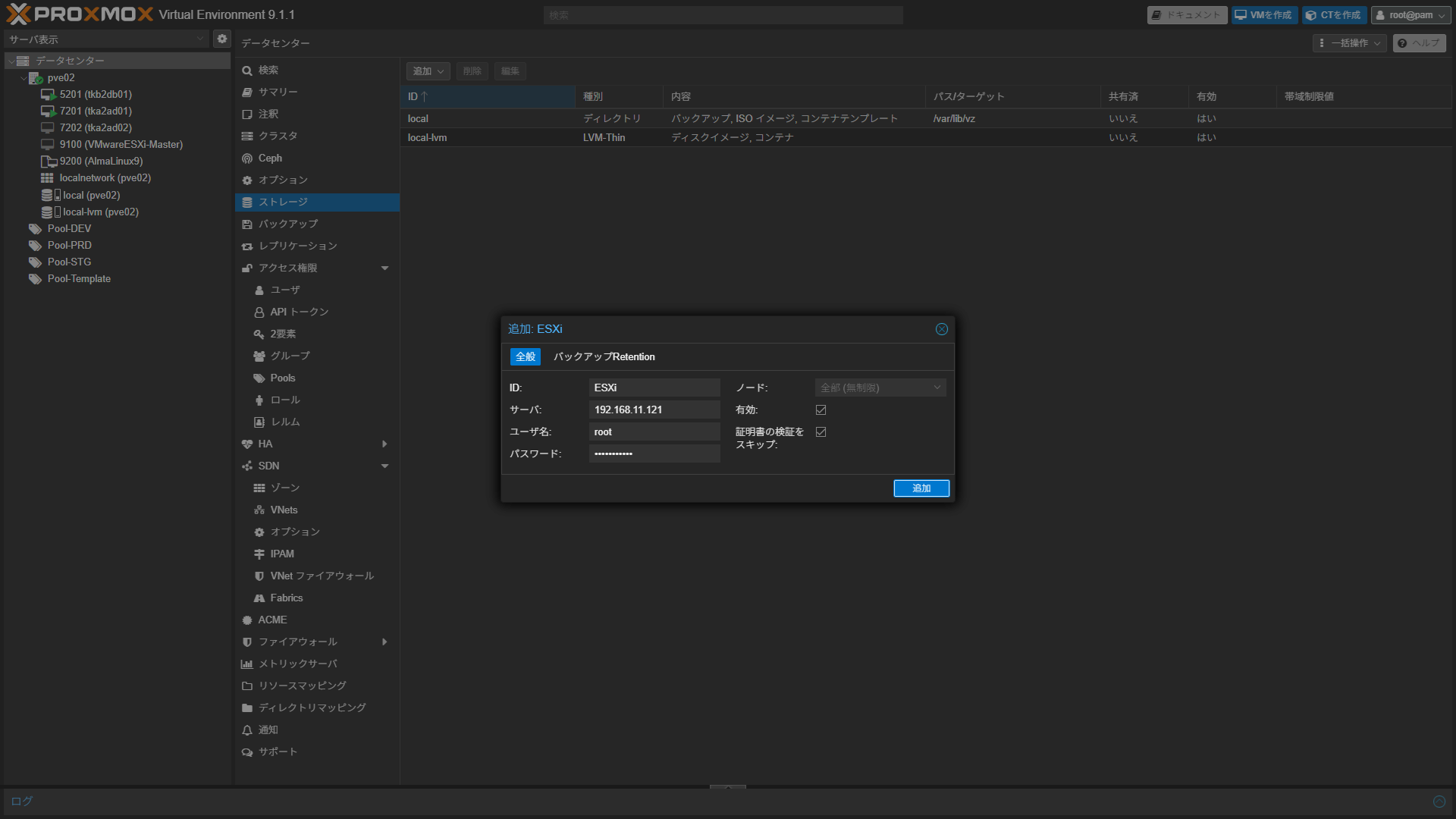 Proxmox VEにVMware ESXiのストレージを認識させる